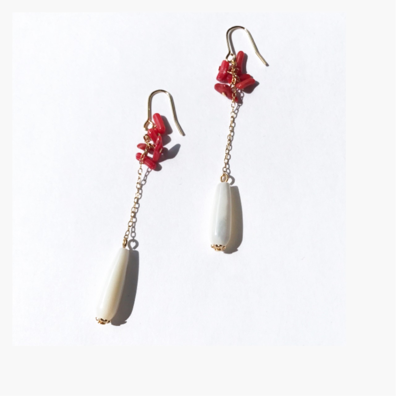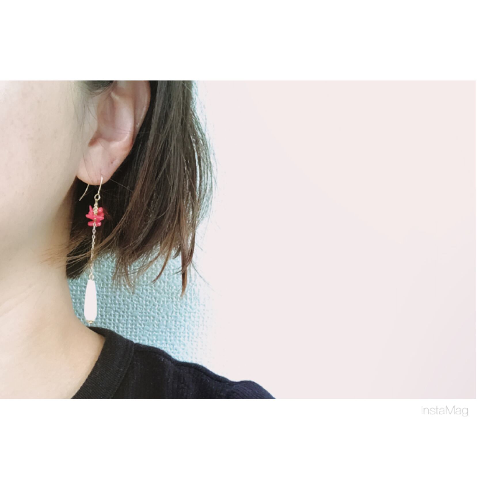 さざれ石とシェルの組み合わせがとっても可愛いピアス、イヤリングです。