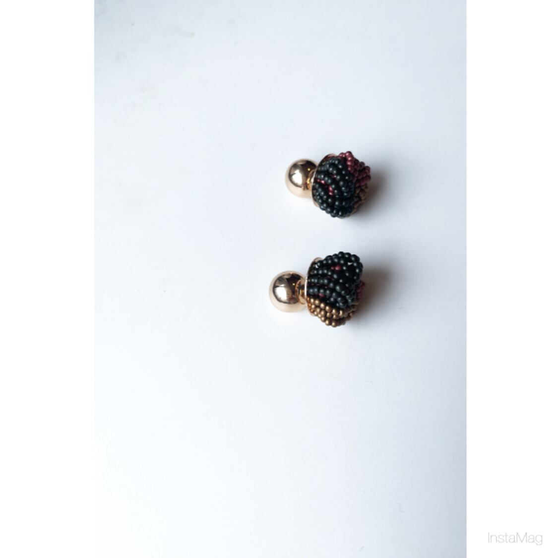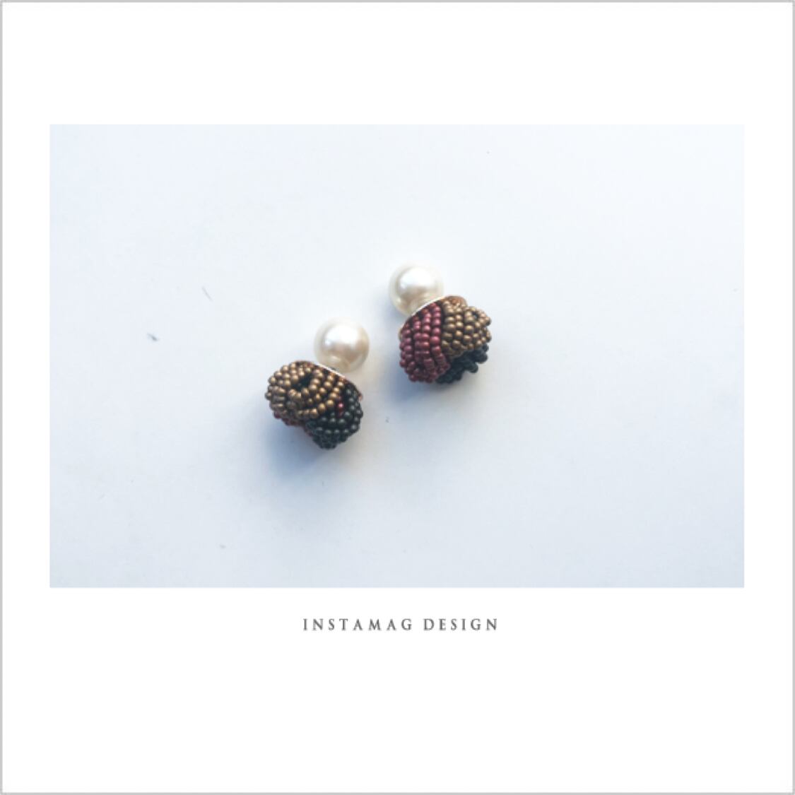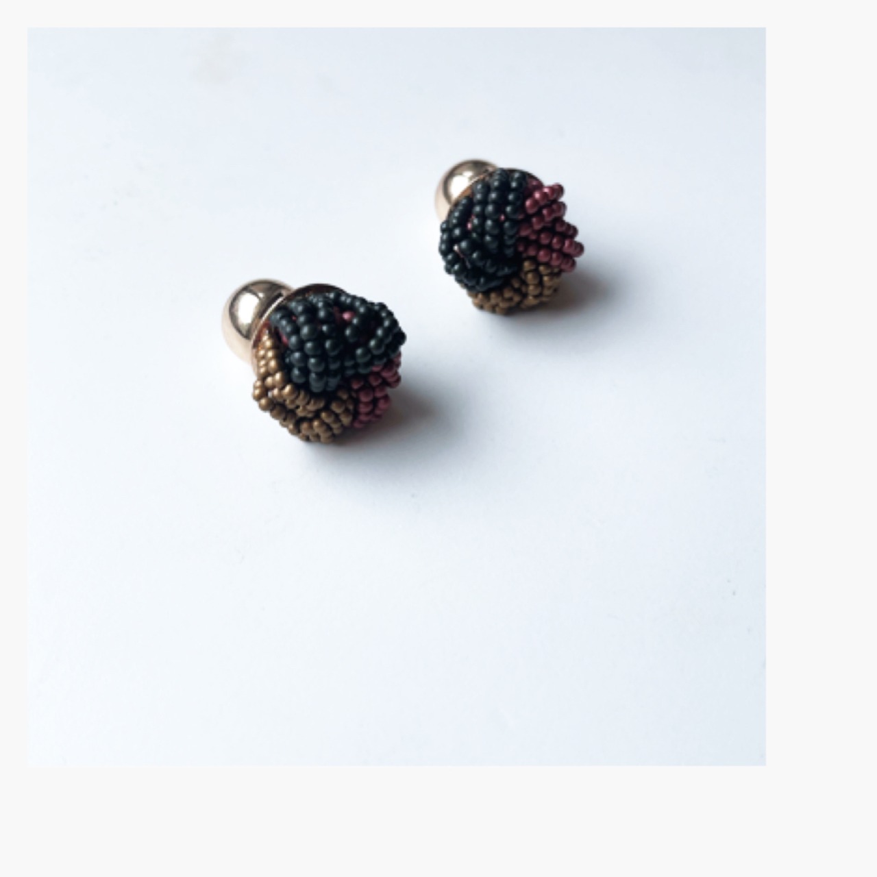 ゴールド、ボルドー、カーキブラウンの3色のビーズピアスにゴールドキャッチを合わせたお品!