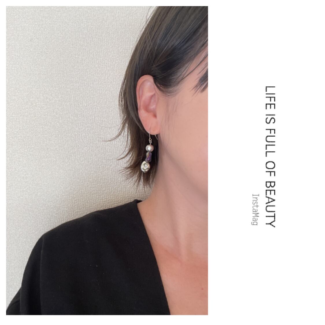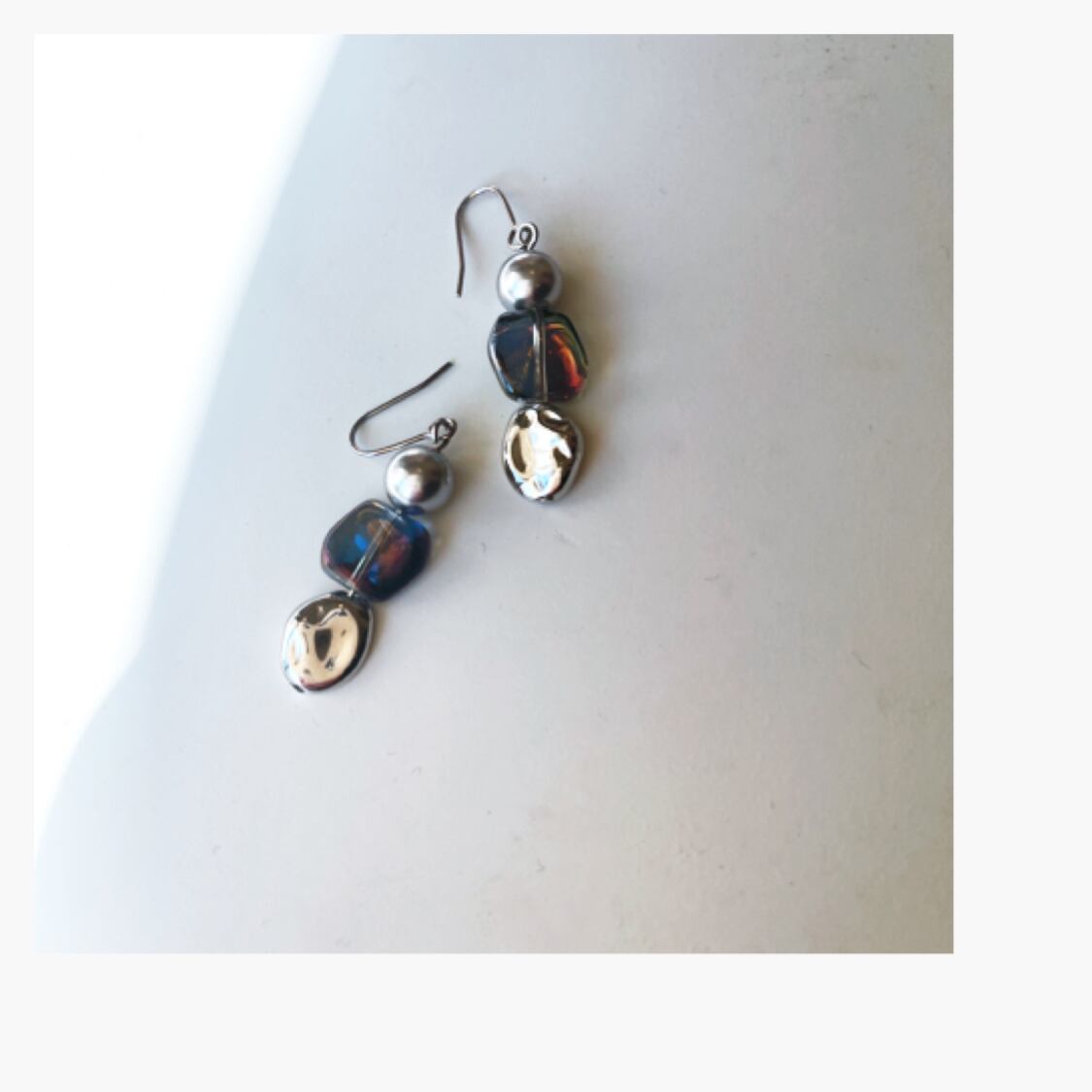 オーロラカラーのビーズに一目惚れして作ったピアス、イヤリング。