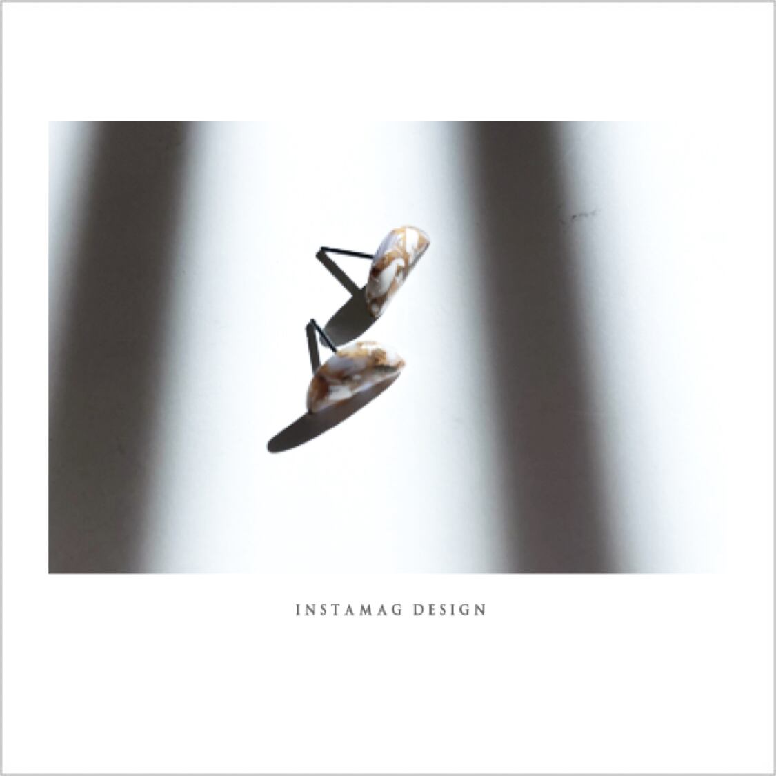 ホワイト、ゴールド、グレーのガラスストーンの小さな半月ピアス。