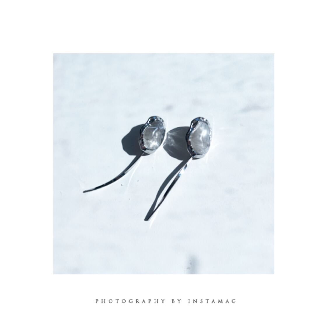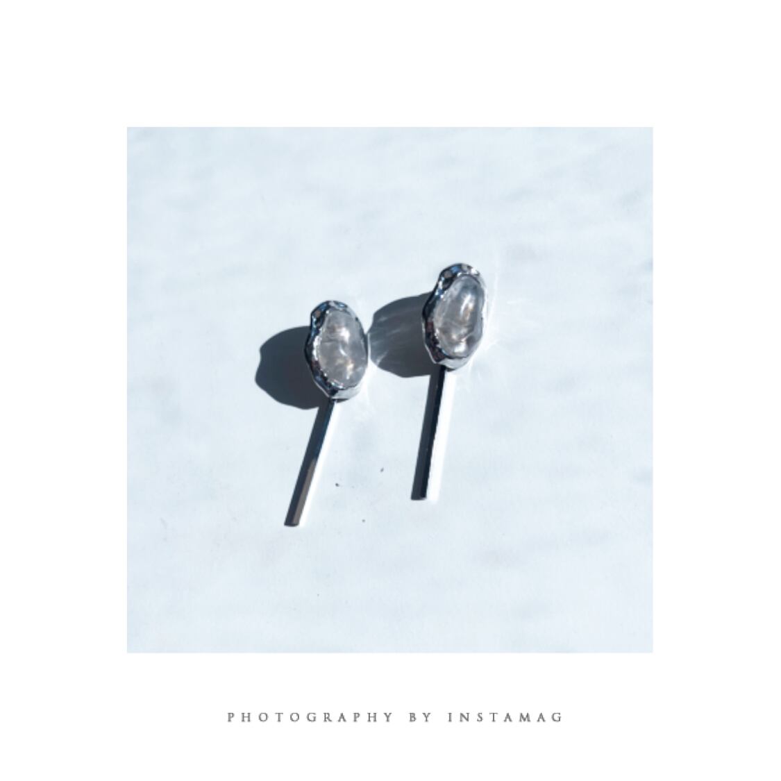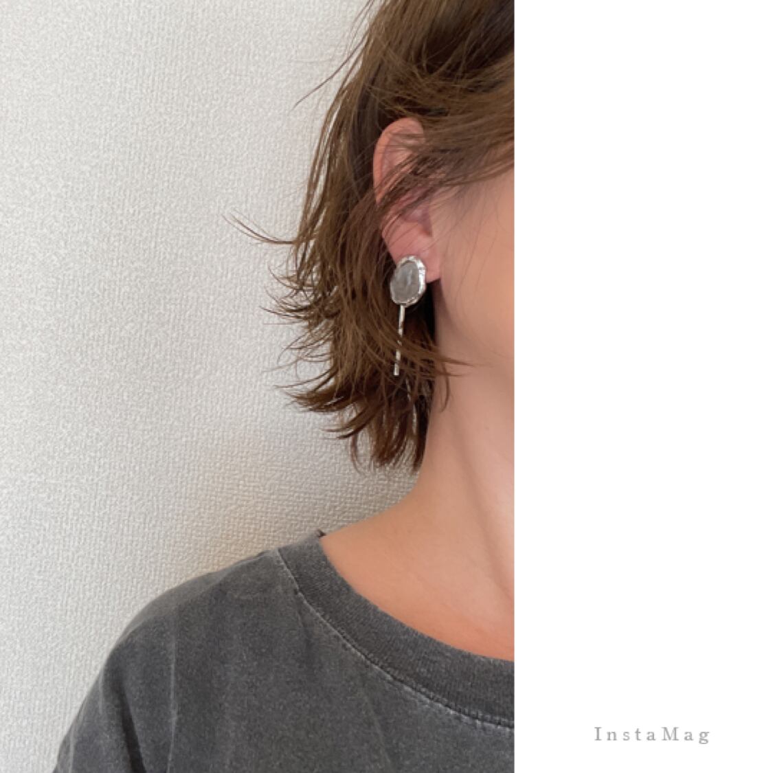 樹脂素材のクリアグレーのマーブルカラーが可愛いピアス。