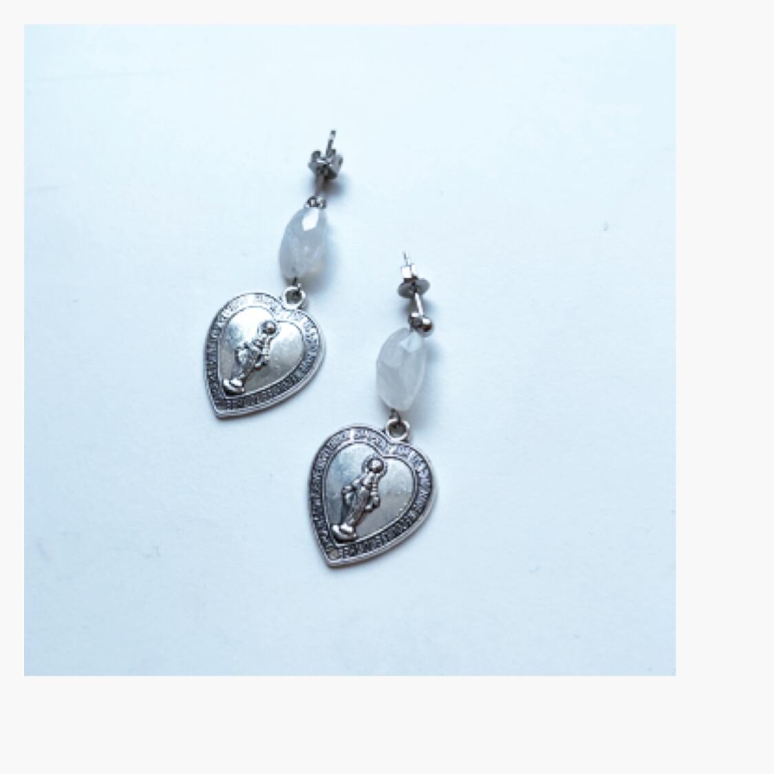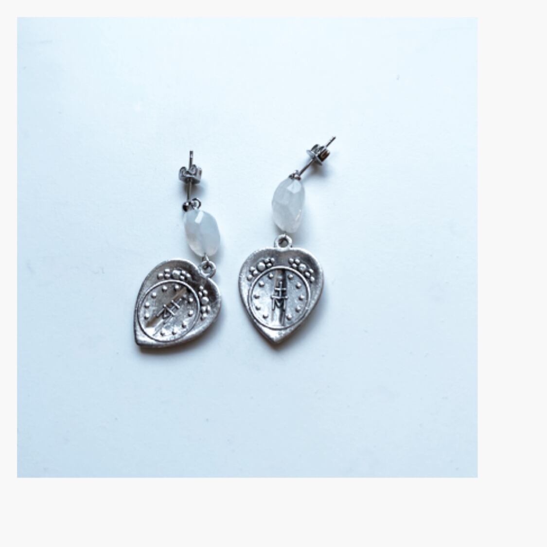 ハートの形のメダイが可愛くて作ったピアス、イヤリング。