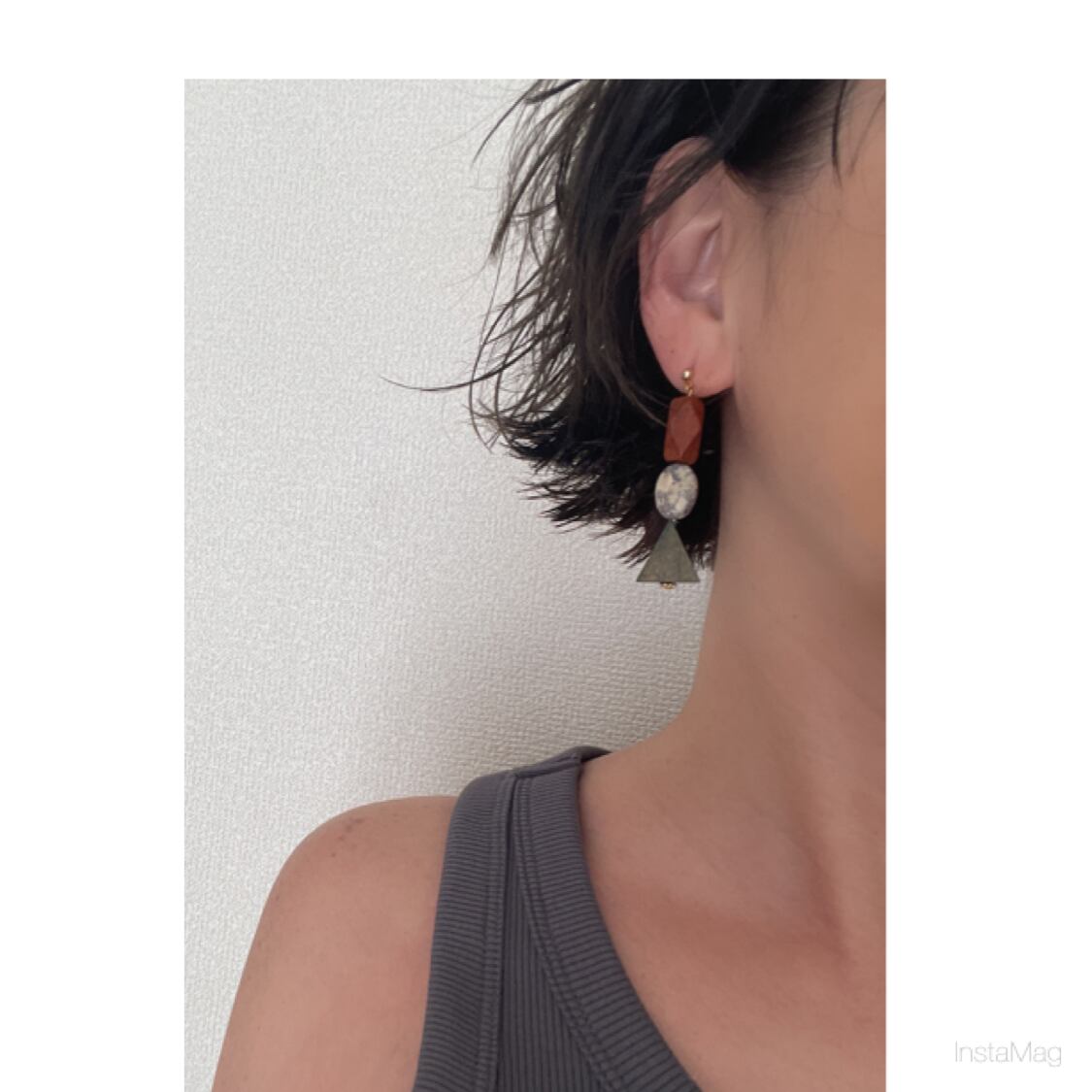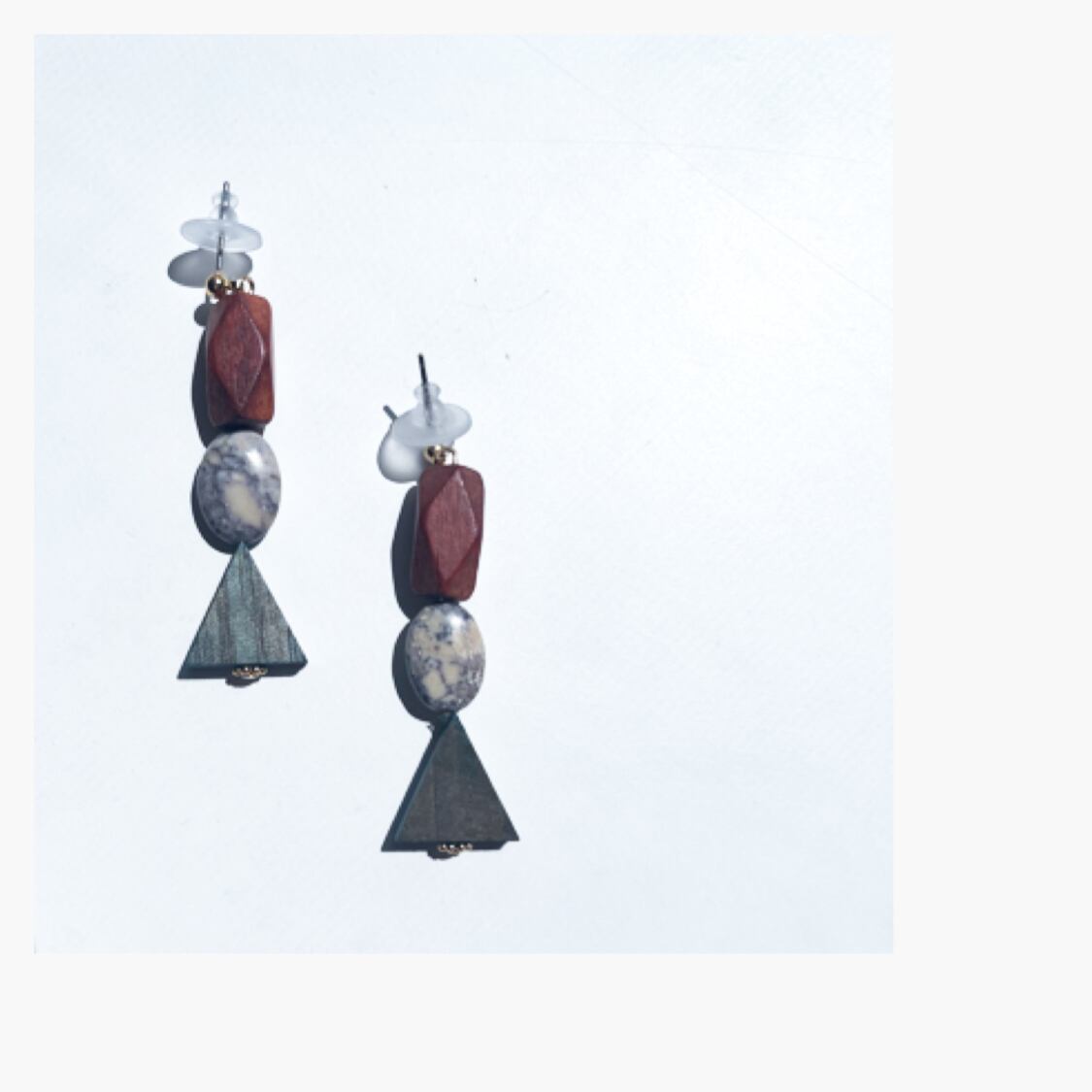 ブラウンとカーキ色のウッドに自然な色合いのアフリカンターコイズがしっくり合うピアス、イヤリング。