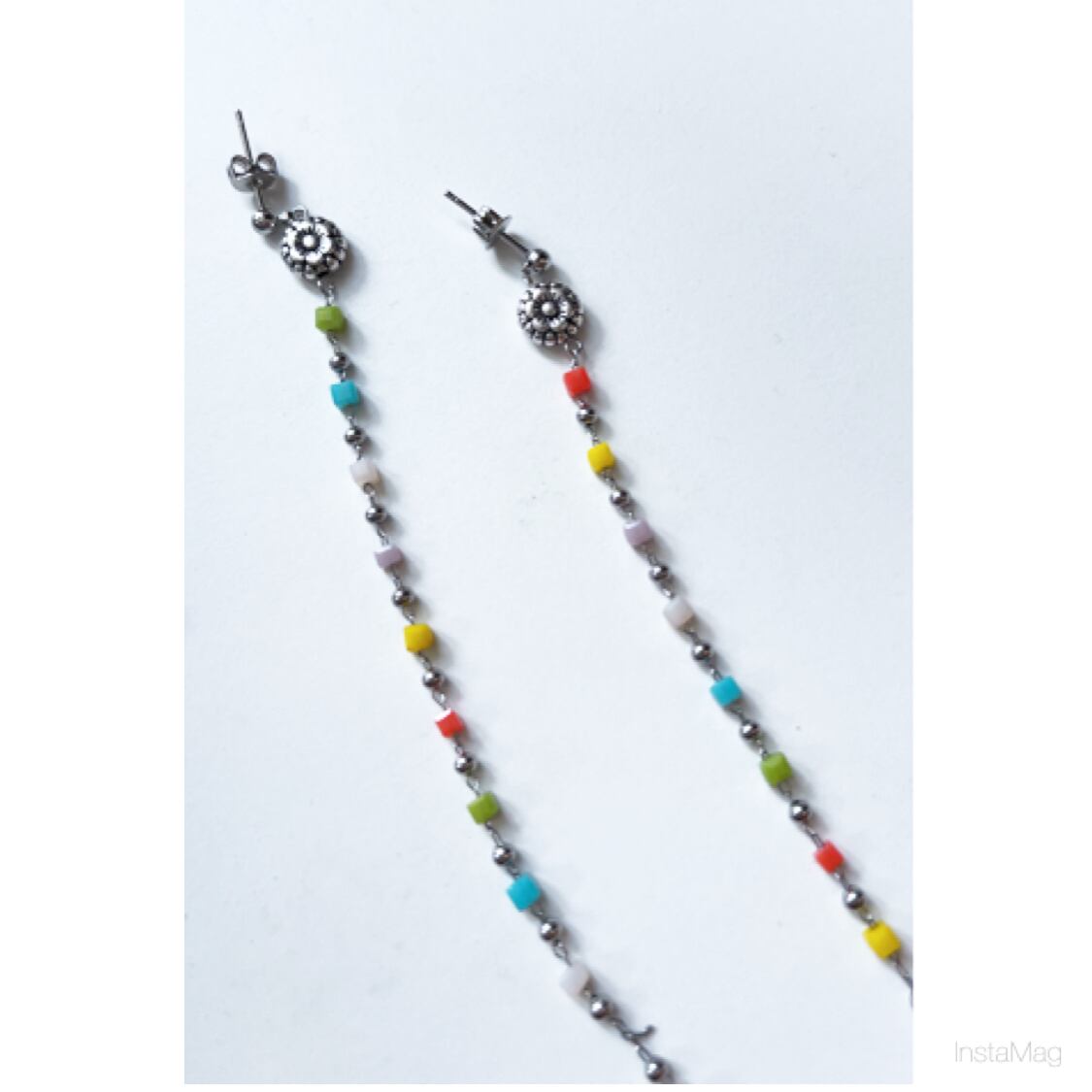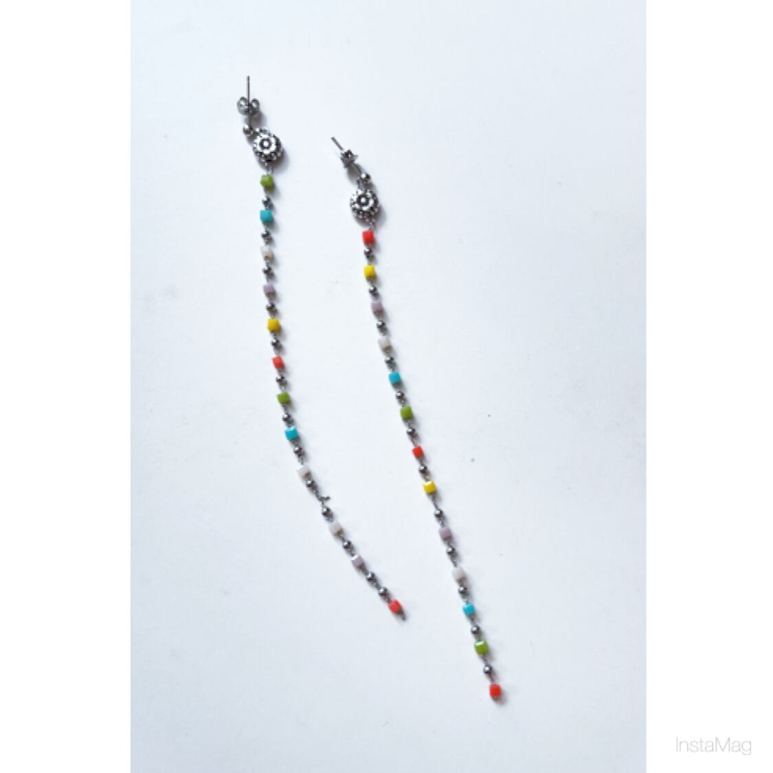 お花のシルバーパーツと合わせたロングピアス、イヤリング。