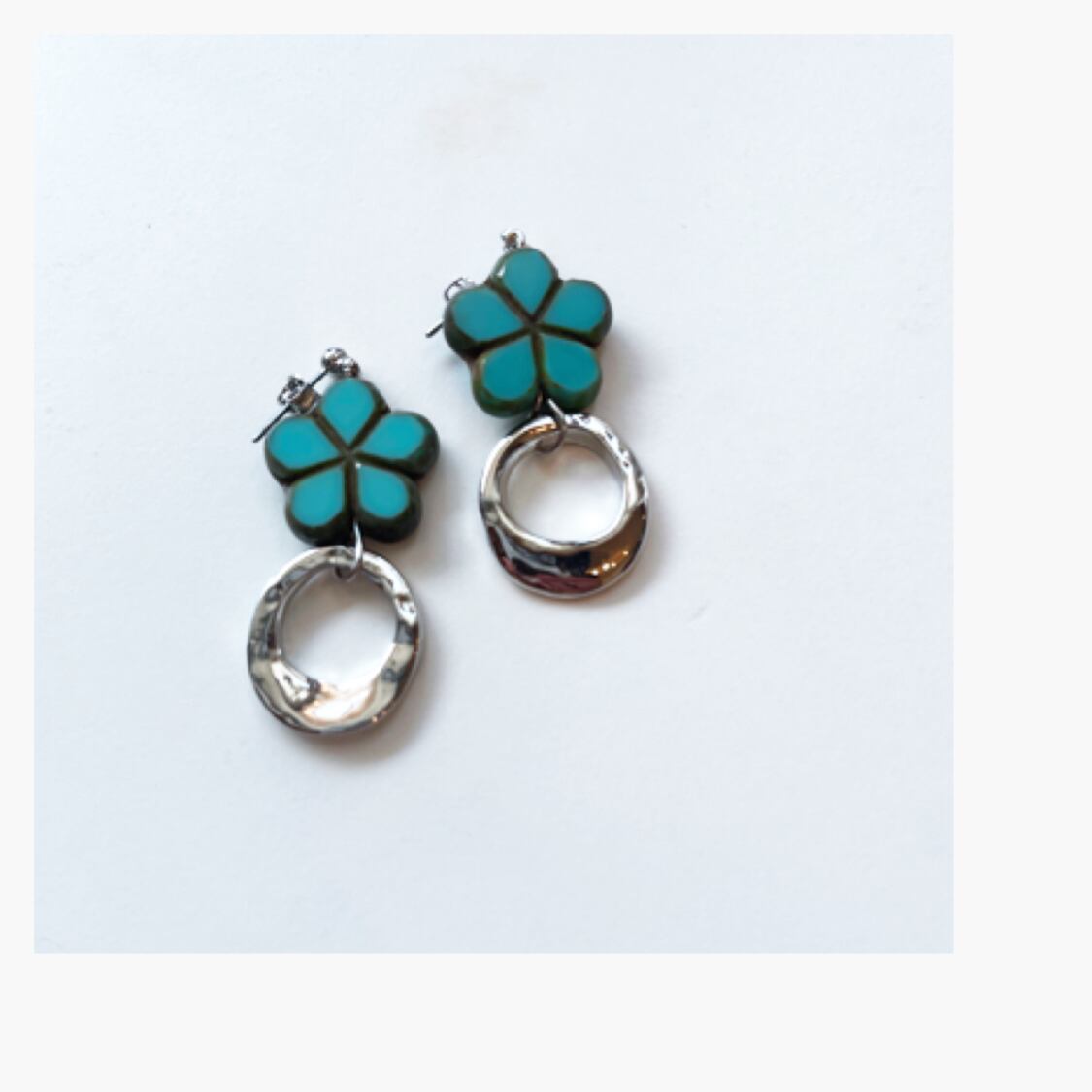 ヴィンテージのフラワーパーツをメインに歪なシルバーリングと合わせたピアス、イヤリング。