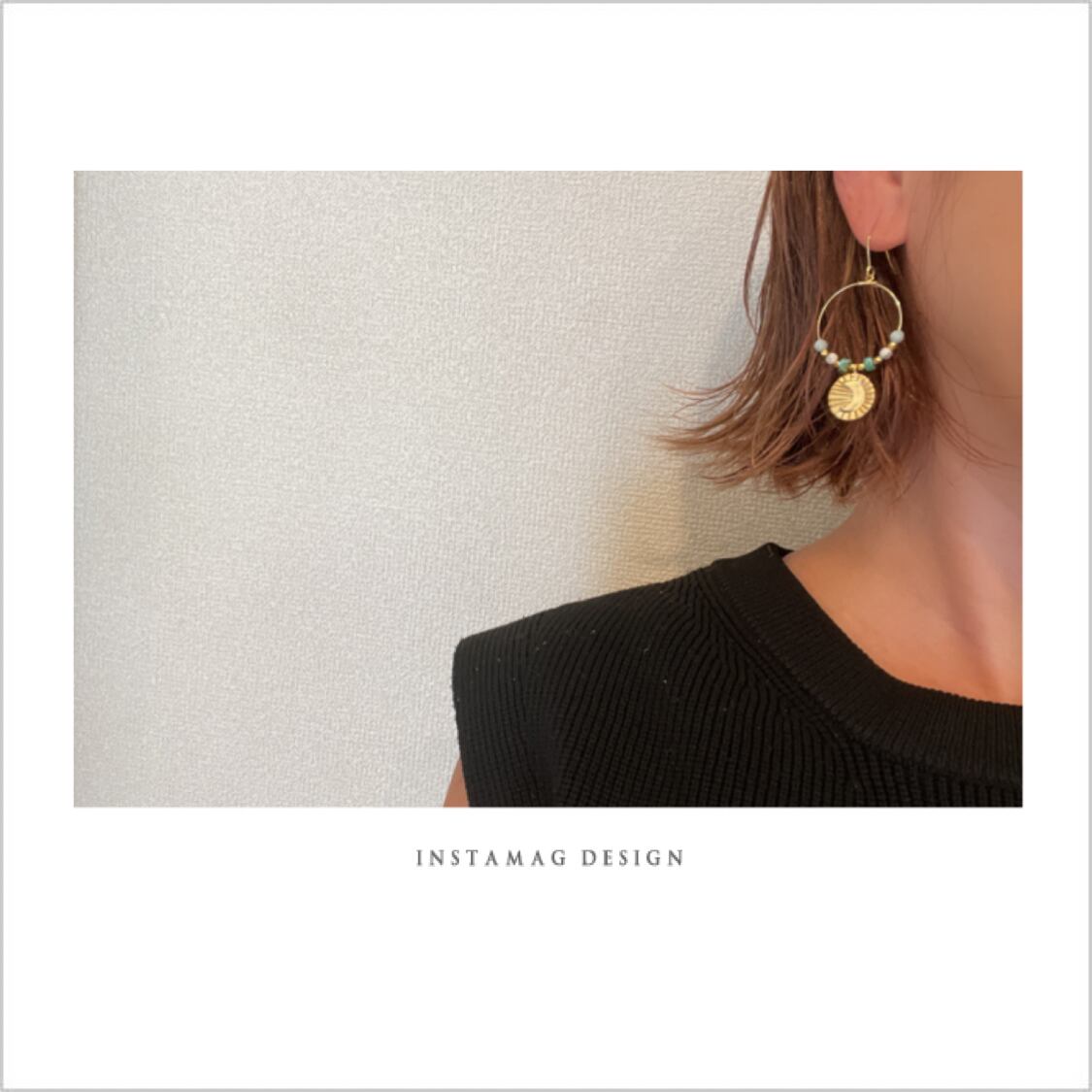 彫りがかっこいいムーンチャームとターコイズ、ラリマー、ハウライトを合わせたフープピアス、イヤリング。