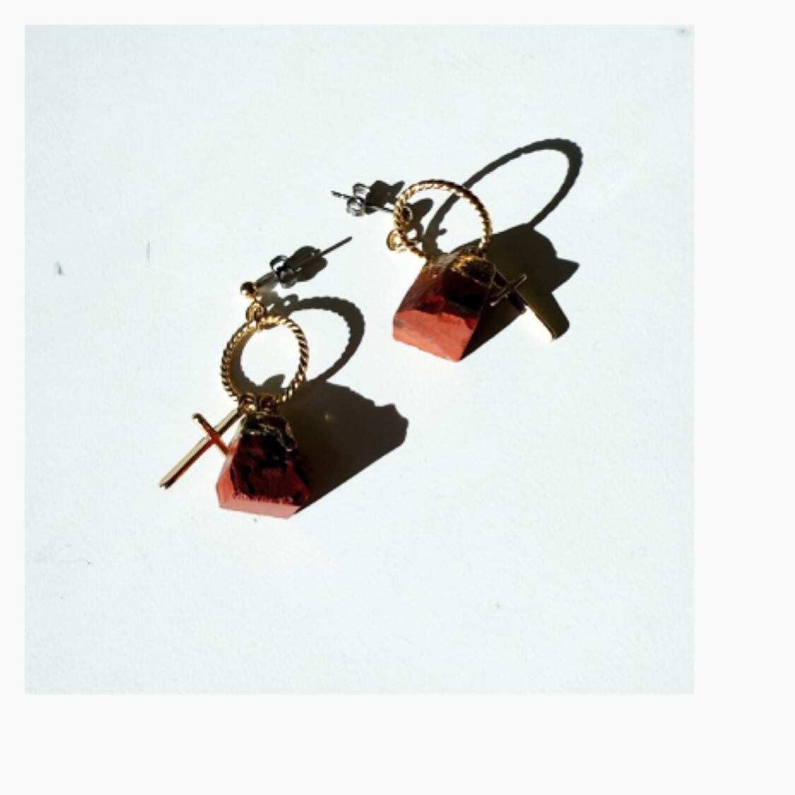 レッドジャスパーの赤茶色の石をメインにしたピアス、イヤリング。